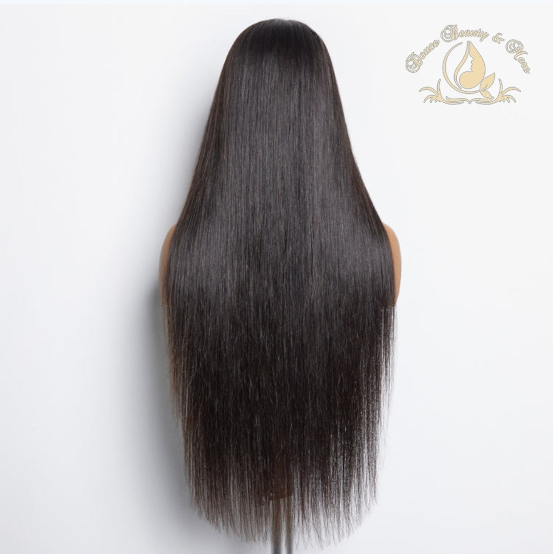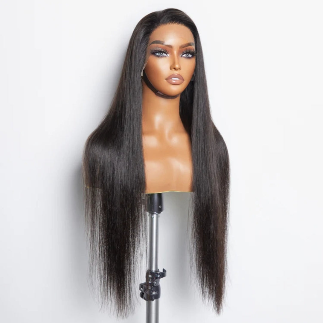 This 13x6 #1B Natural Black Glueless 3D Cap Pre-bleached Straight Transparent Lace Front Wig features a 150% Density.